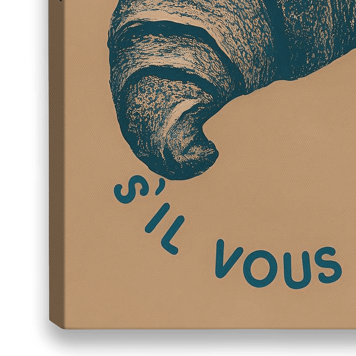 Een eenvoudige illustratie van een croissant met de tekst "Croissant s'il vous plait".