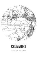 Zwart-witte landkaart, stratenplan of plattegrond van Cromvoirt. Cromvoirt is gelegen in de gemeente Vught, provincie Noord-Brabant. Op de stadskaart zijn alle openbare wegen in Cromvoirt opgenomen. Verder is de kaart voorzien van de coördinaten van het centrum van Cromvoirt.