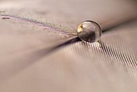 Druppel op een (vogel)veer in natuurlijke kleuren.