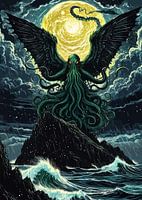 Dit fascinerende kunstwerk toont het mythische moment van Cthulhu die oprijst uit de diepten van de oceaan, tot leven gebracht in levendige, wervelende penseelstreken. Torenhoog boven de beukende golven komt het oeroude wezen tevoorschijn met enorme vleugels en ogen die gloeien van buitenaardse dreiging. De zee kolkt heftig rond zijn…
