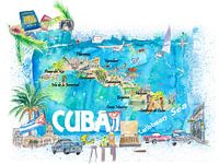 Cuba Antillen Geïllustreerde Reiskaart met Wegen en Highlights