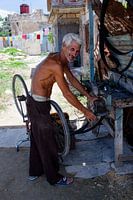 Een Cubaanse fietsenmaker die zijn werk vol trots uitoefent