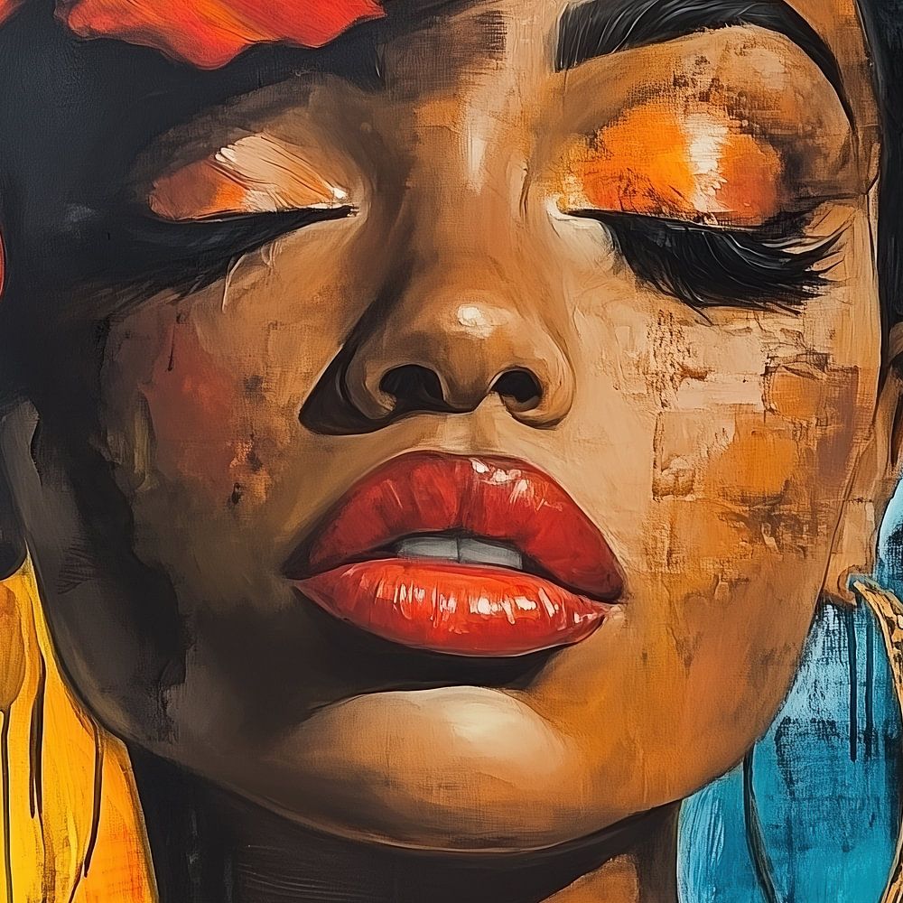 Deze cubaanse vrouw met bloem abstract schilderij is een betoverend kunstwerk dat kracht, schoonheid en cultuur samenbrengt in een expressieve en kleurrijke compositie. De afbeelding toont een Cubaanse vrouw in abstracte stijl, waarbij haar gezicht en houding op artistieke wijze zijn weergegeven. Een opvallend detail is de bloem in haar haar – een symbool van vrouwelijkheid, trots en de levendige sfeer van het Caribisch gebied.