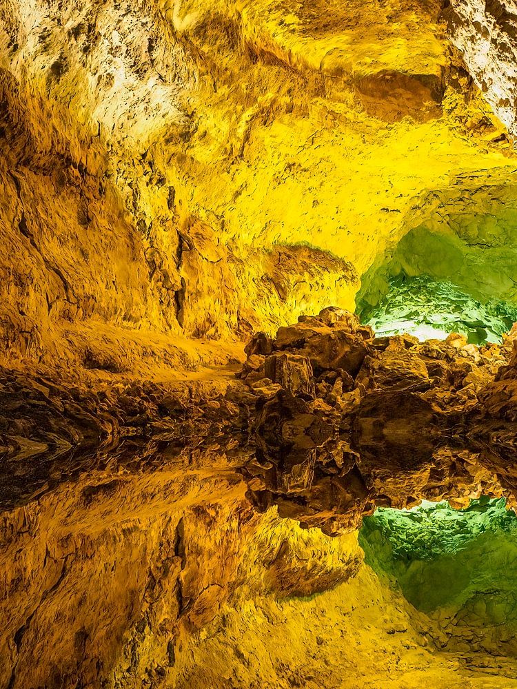 Een fantastisch mooie grot met heel bijzondere weerspiegeling. Het water lijkt hier zeer diep te zijn, maar schijn bedriegt: het is net een klein laagje. Deze lavagrot is een bijzondere plek in het lavalandschap.