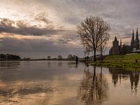 Hoogwater aan de Maas bij Cuijk. De naam Cuijk is afgeleid van het Keltische woord 'Keukja', wat 'kromming' of 'bocht' betekent. Dit duidt op de kromming of bocht in de Maas ter hoogte van Cuijk. 'Keukja' werd later door de Romeinen verbasterd tot 'Ceuclum', waaruit uiteindelijk de naam Cuijk ontstond. De Maas staat in de wintermaanden regelmatig wat hoger dan gemiddeld, maar nu staat de Maas tegen de uiterwaardn aan. Nog even en we kunnen alleen nog maar vanaf de dijk naar het water kijken. De Maas is een regenrivier waarvan het peil sterk afhankelijk is van regen. Daardoor staat de Maas 's winters hoog, terwijl ze 's zomers vaak bijna droog staat. De meeste regen komt uit de Franse en Belgische Ardennen, maar de oppervlakte is er te rotsig om veel water te kunnen bergen. In de winter is er bovendien weinig vegetatie en zijn er periodes van dooi. Ook verdampt er nauwelijks vocht. Ten slotte is het reliëf van het Maasbekken erg groot, waardoor het water met grote snelheid wordt afgevoerd. De Maas (Frans: Meuse) is een 950 kilometer lange rivier in West-Europa. De Maas ontspringt in Frankrijk en stroomt daarna nog door België en Nederland. In Nederland is de Maas de zuidelijkste van de grote rivieren en mondt ze in de Nederlandse rivierdelta uit in de Noordzee.