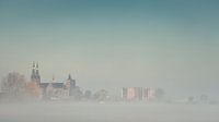 De skyline van Cuijk, aangelicht door de opkomende zon. Door de kou in de ochtend ligt er een laagje mist over de rivier de Maas, waar de torens van de sint Martinuskerk net boven uitsteken. Het Land van Cuijk is een voormalige heerlijkheid die lag in wat tegenwoordig het noordoosten van de provincie Noord-Brabant is. De heerlijkheid werd begrensd door de Maas en de Peel. Het land van Cuijk bestond uit twee gebieden die van elkaar gescheiden werden door de heerlijkheid Boxmeer. Langs de Maas liggen veel weilanden, al sinds eeuwen omgeven door de maasheggen: meidoornhagen die in mei in bloei staan. Deze zijn door hun unieke karakter een cultureel erfgoed. Naast de Maasheggen kent het land van Cuijk ook veel heide, waterplassen en bossen. Vanuit deze Maasheggen heeft u mooi uitzicht op het land van Cuijk. Langs de Maas is het goed wandelen. De Maas is een 950 kilometer lange rivier in West-Europa. De Maas ontspringt in Frankrijk en stroomt daarna nog door België en Nederland. In Nederland is de Maas de zuidelijkste van de grote rivieren en mondt ze in de Nederlandse rivierdelta uit in de Noordzee. Vanaf Geijsteren gaat de Maas de grens met Noord-Brabant vormen. Bij Boxmeer worden nog twee bochten van de Maas rechtgetrokken; daarna maakt ze bij Cuijk een zeer ruime bocht naar links richting het westen. Vanaf Mook ligt niet Limburg, maar Gelderland op de rechteroever.