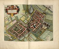 Jan (Joan) Willemsz. Blaeu (Amsterdam) was een Nederlandse drukker en uitgever, cartograaf en uitgever van vermaarde atlassen. Hier portretteert hij elke Nederlandse vestingstad.