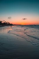 Zonsondergang op het strand van Cumbuco in Brazilie.
