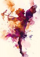 Een abstract schilderij van Cupido, de god van de liefde in de Romeinse mythologie. Hij was de zoon van de godin Venus. Volgens een verhaal van de Romeinse schrijver Apuleius werd Cupido verliefd op de koningsdochter Psyche, maar verbood haar zijn gezicht te zien. Na ontelbaar lijden werden de twee uiteindelijk verenigd en werd zij toegelaten tot de godenwereld.