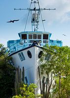 Het voormalige Nederlandse Marineschip Woerden ligt nu bij Curaçao Sea Aquarium op de walen doet dienst als kantoor.