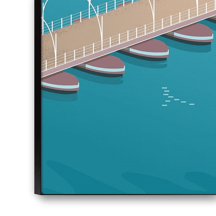 Toen ik deze illustratie van Curaçao ging maken besloot ik de Handelskade weer te geven vanuit vogelperspectief zodat de oranje daken van de historische gebouwen goed zichtbaar zijn. De Handelskade is een van de meest iconische bezienswaardigheden van Willemstad, met de Pontjesbrug in het midden. De brug, ook bekend als Koningin Emmabrug, is een drijvende draaibrug die de wijken Punda en Otrobanda van Willemstad met elkaar verbindt.