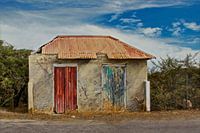 Op de weg naar Port Marie vind je dit hutje uit vervlogen tijden. Het is krakkemikkig, verloederd en er woont niemand meer. De kleuren zijn prachtig en steken mooi af tegen de blauwe lucht en de knoei. Voor mij is dit een landmark op Curacao op weg naar een prachtig strand