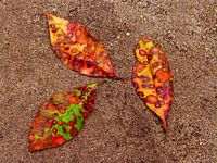 Mooi, zelfs prachtig gekleurde bladeren van een krentenboom. Herfst is het nog niet. De droogte in de zomer kan deze prachtige verkleuring en afstoting van de bladeren veroorzaken. En natuurlijk maken wij er dan een sfeervol beeld van! Deze foto is onderdeel van een tweedelige serie en vormt tezamen met Currantly 2 een prachtige tweeluik!