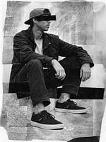 Dit werk voelt als een losgetrokken stuk straat dat van de muur is gehaald en opnieuw is opgebouwd. De zittende figuur lijkt samengesteld uit verschillende lagen papier, alsof hij letterlijk is opgebouwd uit posters, stickers en gescheurde affiches die je normaal in een stedelijke omgeving tegenkomt. De subtiele verschuivingen in het…