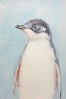 Een kleurrijk digitaal schilderij van een baby penguin. Het werk geeft een dromerige en klassieke uitstraling aan uw interieur!