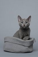 Over ‘Cute grey Russian blue kitten in a grey basket on a grey backgro’ van Elles Rijsdijk