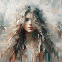 Laat je betoveren door de serene pracht van dit olieverfportret van een vrouw, waarin zeegroene tinten samenkomen met wit en goud. Haar lang, golvend haar lijkt te dansen, een symfonie van rust en elegantie op het doek. Het werk ademt haar innerlijke kracht en schoonheid uit, waardoor dit werk een tijdloze charme uitstraalt. Breng een…