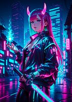 Over ‘Cyberpunk stijl Oni Demon Anime meisje’ van Ruzerin