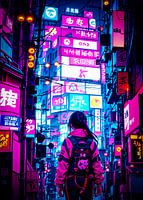 Cyberpunk neon Tokio, Sci-fi anime girl art, Futuristische cyberpunk esthetiek, Neon vaporwave kunstwerk, Surreële cyberpunk stad, Japanse cyberpunk kunst, Futuristisch neon stadslandschap, Cyberpunk spirituele reis