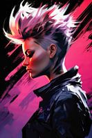 Een vrouw in kleurrijke esthetische cyberpunkstijl.