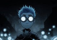 Koop de illustratie Cyberpunkjongen met gloeibril en blauw haar van BINEDITS als print op canvas, aluminium dibond, (ingelijste) fotoprint, behang en ArtFrame. Voor jou op maat geprint in Fine-Art kwaliteit.