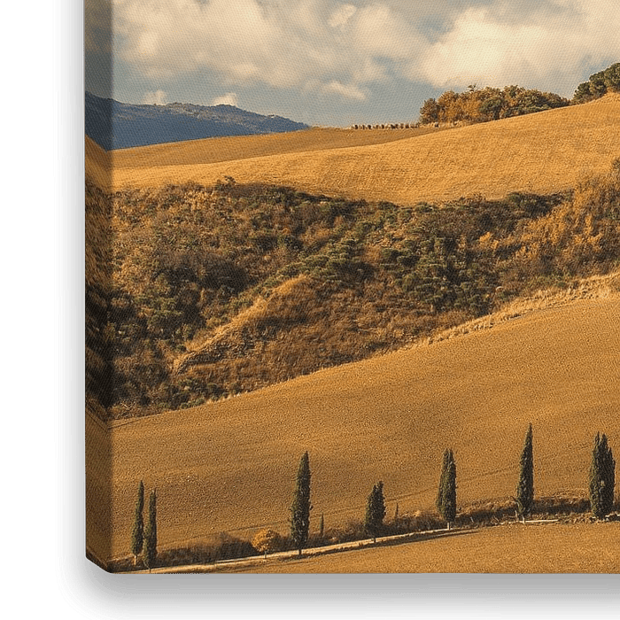 het mooie Toscaanse landschap met zijn glooiende heuvels cypressen en lanen.