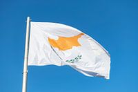Flag of Cyprus flying in the wind with a blue sky background.country, land, cypriot