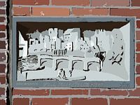 D' Oude Tollesteeghpoort is een digitaal kunstwerk dat een gestileerde weergave biedt van de historische stadspoort die ooit toegang gaf tot Utrecht. De voorstelling is gebaseerd op de originele gevelsteen die tegenwoordig te zien is aan het Louis Hartlooper Complex. In het werk is de poort niet natuurgetrouw afgebeeld, maar vereenvoudigd tot krachtige lijnen en vormen, waardoor een bijna symbolische interpretatie ontstaat van het oorspronkelijke bouwwerk.