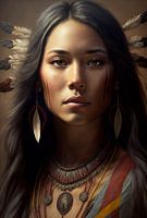 Een krachtige, trotse en bedachtzame native amerikaanse vrouw. Ze heeft iets kwetsbaars en sterks tegelijkertijd.