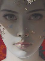 Close-up fotografie van een dromerig meisje met een wazige (blurred) afwerking. Deze bewerkte foto roept een gevoel van mysterie en tederheid op, waarin imperfectie de schoonheid versterkt.