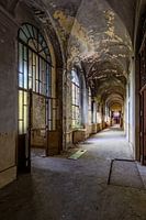 Het licht in deze hal is als een lot uit de loterij, als fotograaf kon ik het niet beter wensen. Wat een diepte krijg je door de schaduwen. Aan het plafond te zien heeft er een brand gewoed, gelukkig is deze hal zo goed als intakt gebleven.