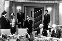 Francis Ford Coppola sur le plateau set du Parrain III THE GODFATHER: DEEL III 1990 dirigeant Joe Montegna (links), Al Pacino (midden), Andy Garcia (rechts staand) en Eli Wallach (zittend tweede van rechts). Op de set dirigeert Francis Ford Coppola Joe Montegna (links), Al Pacino (midden), Andy Garcia (rechts) en Eli Wallach (zittend…