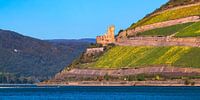 De Rijn en de ruïnes van de burcht Ehrenfels bij Bingen / Rüdesheim, Duitsland