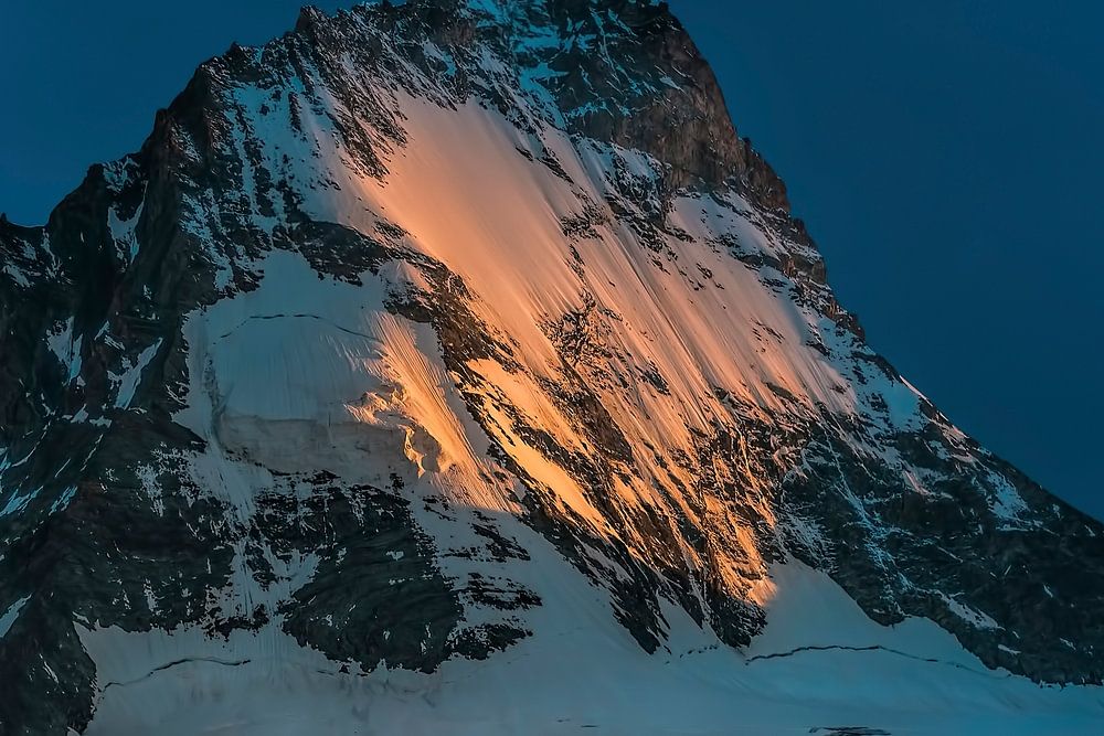 De machtige vierduizender Dent Blanche gezien in het laatste avondlicht vanaf de Cabane du Grand Mountet