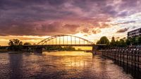DEVENTER WILHELMINABRUG EN DE WELLE TIJDENS ZONSONDERGANG