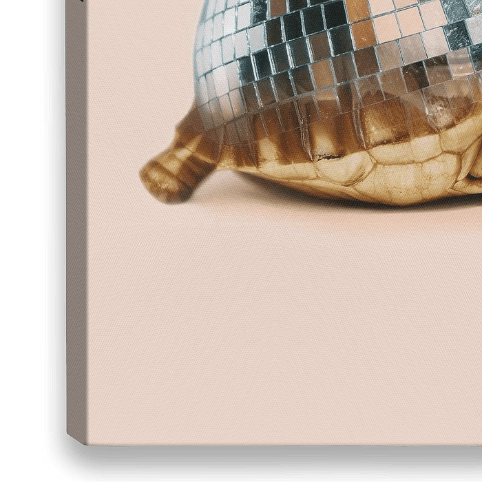 I'm coming up so you better get this party started! Modern pop-art humor ontwerp "Disco Turtle" surrealistische foto collage van dieren in roze pastelkleuren. Maak elke muur fun!