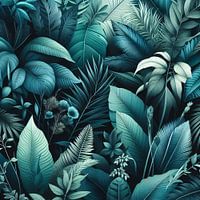 Donkergroen/blauwe kleuren domineren de elegante sfeer van mijn nieuwe botanische collage met bladeren. ©12-2023 Pia Schneider, atelier KLEUR-VISIE