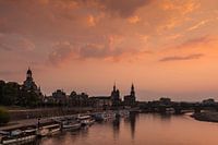 Skyline van Dresden bij zonsondergang, Duitsland