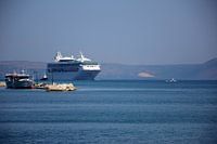 Ik ben vroeg opgestaan op mijn vrouw's verjaardag. Vandaag is de dag dat ze aankomt op het cruiseschip 'Rhapsody of the Seas' en ik ga haar verrassen door onverwachts op te dagen. Het was even wachten in de haven van Argostoli op Kefalonia, Griekenland, maar daar is ze dan!