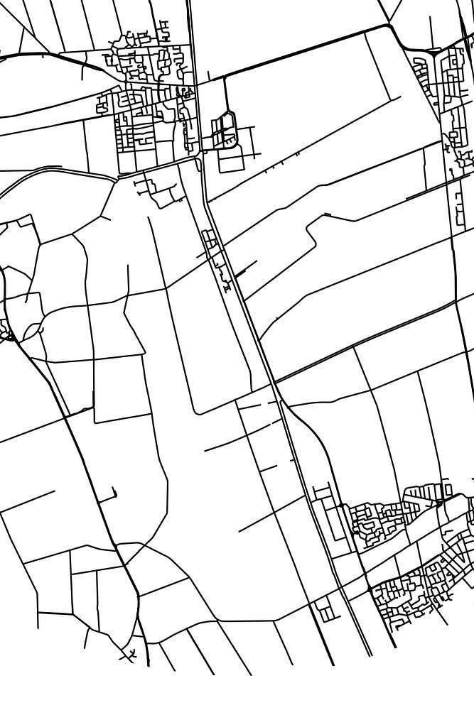 Zwart-witte landkaart, stratenplan of plattegrond van Daarlerveen. Daarlerveen is gelegen in Twente, in de gemeente Hellendoorn, provincie Overijssel. Op de stadskaart zijn alle openbare wegen in Daarlerveen opgenomen. Verder is de kaart voorzien van de coördinaten van het centrum van Daarlerveen.