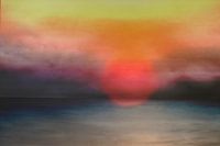 Dag en nacht is een dubbele opname van de Noordzee overdag en van de ondergaande zon (onscherp) bij Hoorn in Noord-Holland