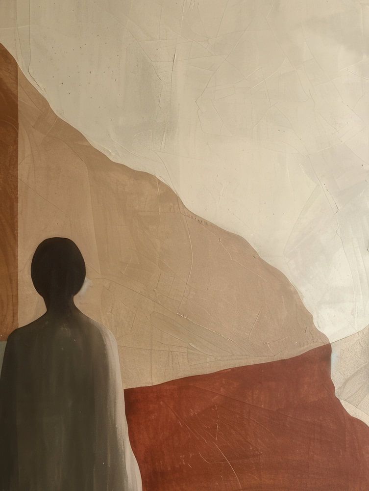 Dagdromer, modern en abstract portret in aardetinten. Kies zelf het formaat en materiaal bij dit werk en maak het helemaal passend voor jouw interieur.
