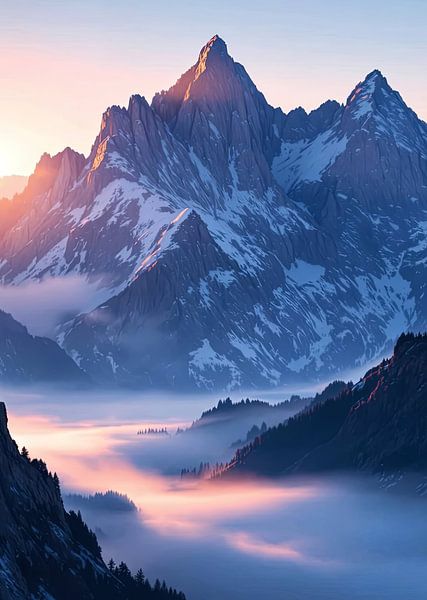 Koop dit digital art kunstwerk Dageraadpieken Mist van Artivisual als reproductie geprint op canvas, aluminium dibond, (ingelijste) fotoprint, behang en ArtFrame. Voor jou op maat geprint in Fine-Art kwaliteit.