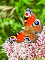 Dagpauwoogvlinder (Inachis io) in het Lille Vildmose moeras in Denemarken.