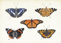 Kleurrijke dagvlinders vastgelegd door natuurillustrator Jasper de Ruiter. Deze aquareltekeningen geven de schoonheid van deze dagvlinders prachtig weer; grote weerschijnvlinder, distelvlinder, monarchvlinder, atalanta en kleine vos.