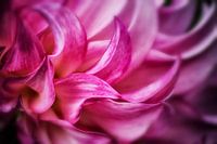 Er zijn enkele duizenden soorten dahlia's en ze zijn niet voor niets een van de populairste tuinplanten. Sommige soorten hebben mooie gebogen bloemblaadjes die ze een bijzondere uitstraling geven. Op de foto zie je het detail van zo'n bloem in close-up. De tinten zijn roze / roze / fuchsia. Ze brengen een stukje zomer in elke kamer en zorgen voor een mooi kleuraccent.