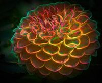 Dahlia, oranje-rood, tegen een zwarte achtergrond van Rietje Bulthuis
