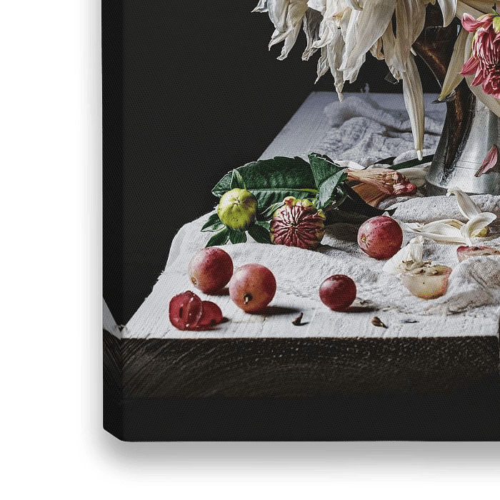 Koop dit stilleven Dahlia, stilleven op tafel (gezien bij vtwonen) van Alessandra Mignardi op canvas, aluminium dibond, (ingelijste) fotoprint, behang en ArtFrame, op maat geprint in Fine-Art kwaliteit.