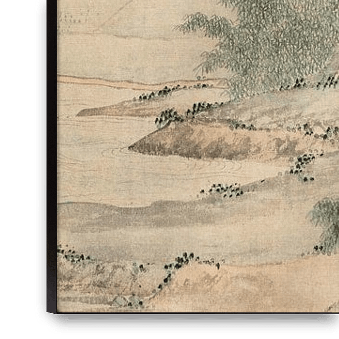 Koop Dai Jin,Riverside dennenhut, Chinees Landschap als reproductie op canvas, aluminium dibond, (ingelijste) fotoprint, behang en ArtFrame, op maat geprint in Fine-Art kwaliteit.