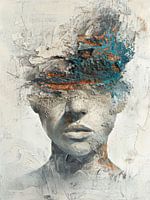 Een boeiend abstract portret dat textuur en emotie samenbrengt. Met ruwe penseelstreken en subtiele details vangt dit kunstwerk de schoonheid van verwering en mysterie. Perfect voor wie een unieke, moderne en intrigerende blikvanger wil in huis.